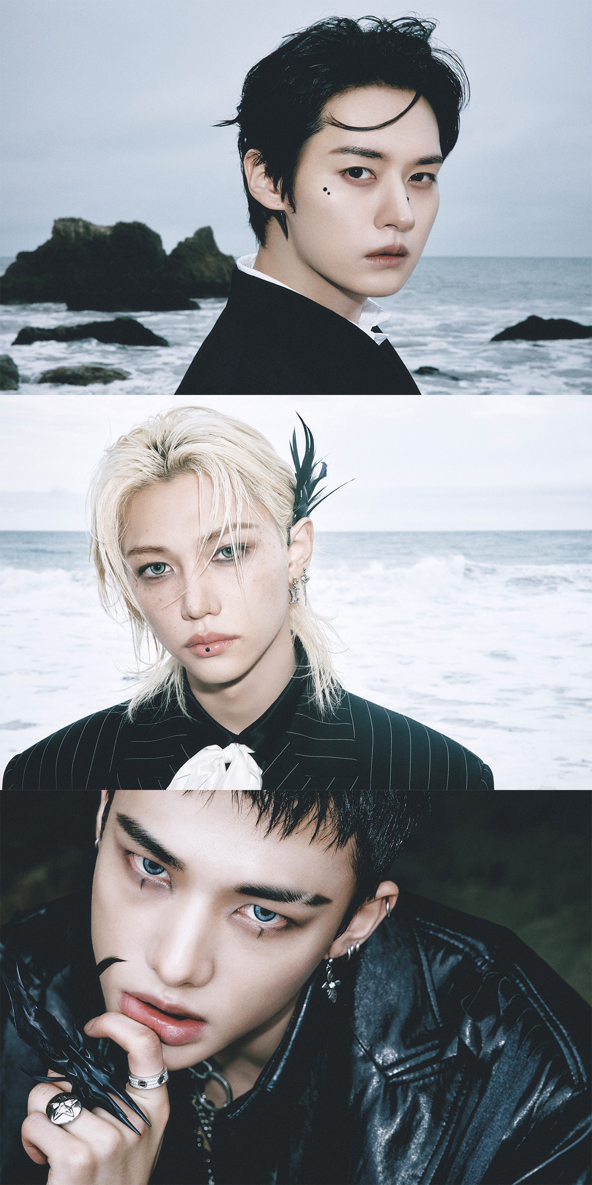 사진 속 세 멤버의 올블랙 스타일링은 하얗게 부서지는 파도와 대비되며 몰입감을 더했다. 리노, 현진, 필릭스는 나부끼는 바람, 주변을 둘러싼 나무, 곁을 지키는 커다란 새 등 모든 자연 요소와 조화를 이루며 웅장한 분위기를 선사했고 카리스마 넘치는 '현대판 신선'을 연상케 하는 아우라로 신보 호기심을 끌어올렸다.
