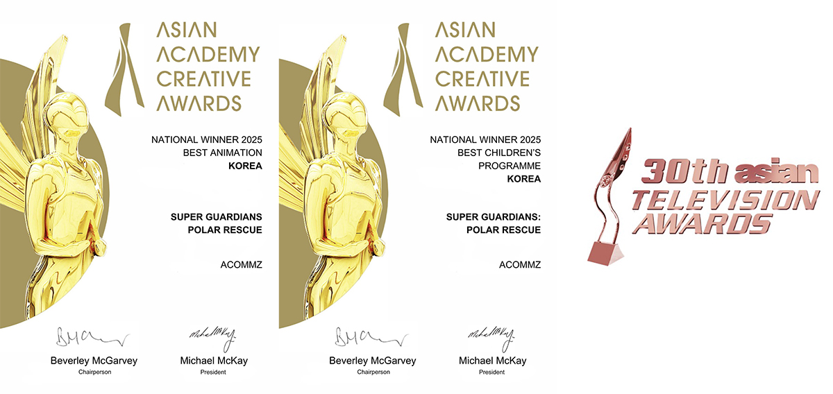 에이컴즈가 제작한 폴라레스큐: 슈퍼가디언즈’가 아시아 아카데미 크리에이티브어워즈(Asian Academy Creative Awards, AACA)에서 Best Animation과 Best Children’s Program 부문에서 각각 국가대표 수상작(National Winner)으로 선정되었고, 그와 동시에 AACA국제 본선에 진출하는 쾌거를 이루었다. 더불어, 아시안 텔레비전어워즈(Asian Television Awards, ATA)에서도 ‘폴라레스큐: 슈퍼가디언즈’가 본상 후보에 동시 노미네이트 됐다고 밝혔다.