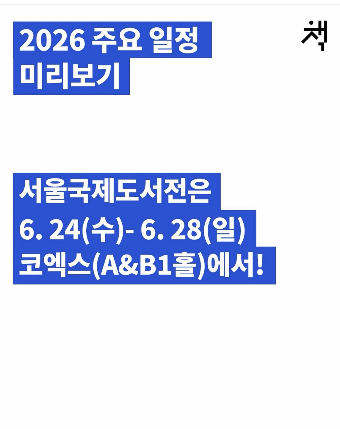 대한출판문화협회가 주최하는 이번 도서전은 6월 24일(수)부터 28일(일)까지 5일간 코엑스 A홀과 B1홀에서 진행된다. 올해는 국내외 출판사와 작가, 그리고 독자들이 한자리에 모여 한국 출판의 저력과 세계 독서 문화의 흐름을 공유할 예정이다.