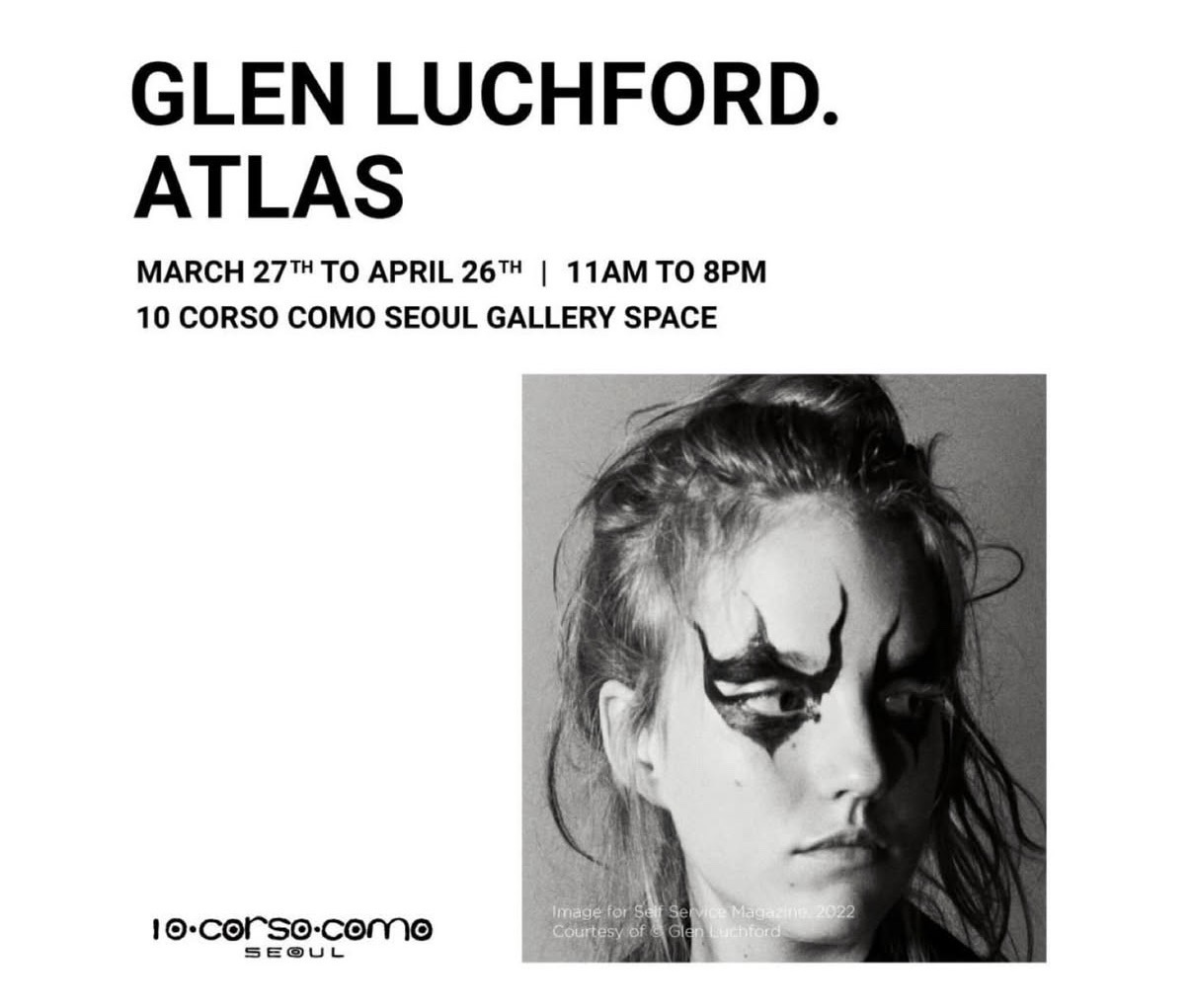 편집숍의 시초이자 문화 공간인 10 꼬르소 꼬모 서울(10 Corso Como Seoul)이 런칭 18주년을 기념하여 세계적인 패션 포토그래퍼 글렌 루치포드(Glen Luchford)의 국내 첫 개인전을 개최한다.