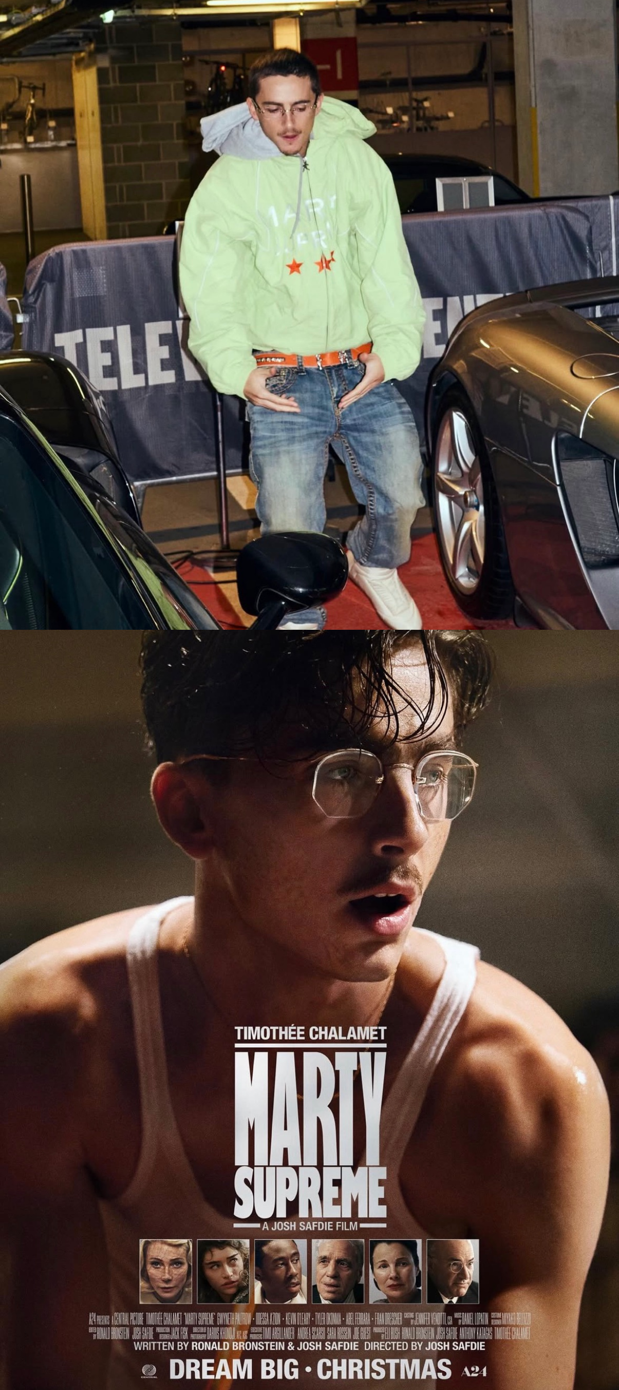 영화들의 무덤이라 불릴 만큼 침체된 2025년 극장가 상황을 고려할 때, <마티 슈프림>이 보여준 화력은 단순한 흥행 이상의 의미를 지닌다. 이러한 성취 뒤에는 영리한 마케팅 전략이 주효했다. 티모시 샬라메는 브랜드 ‘나미아스(NAHMIAS)’와 협업해 제작한 영화 제목 자켓을 공식 석상과 일상에서 꾸준히 노출하며 화제를 모았다. 이후 저스틴 비버, 프랭크 오션 등 슈퍼 셀럽들이 이 자켓을 입은 모습이 포착되면서 영화 제목은 개봉 전부터 하나의 글로벌 패션 트렌드로 자리 잡았다.