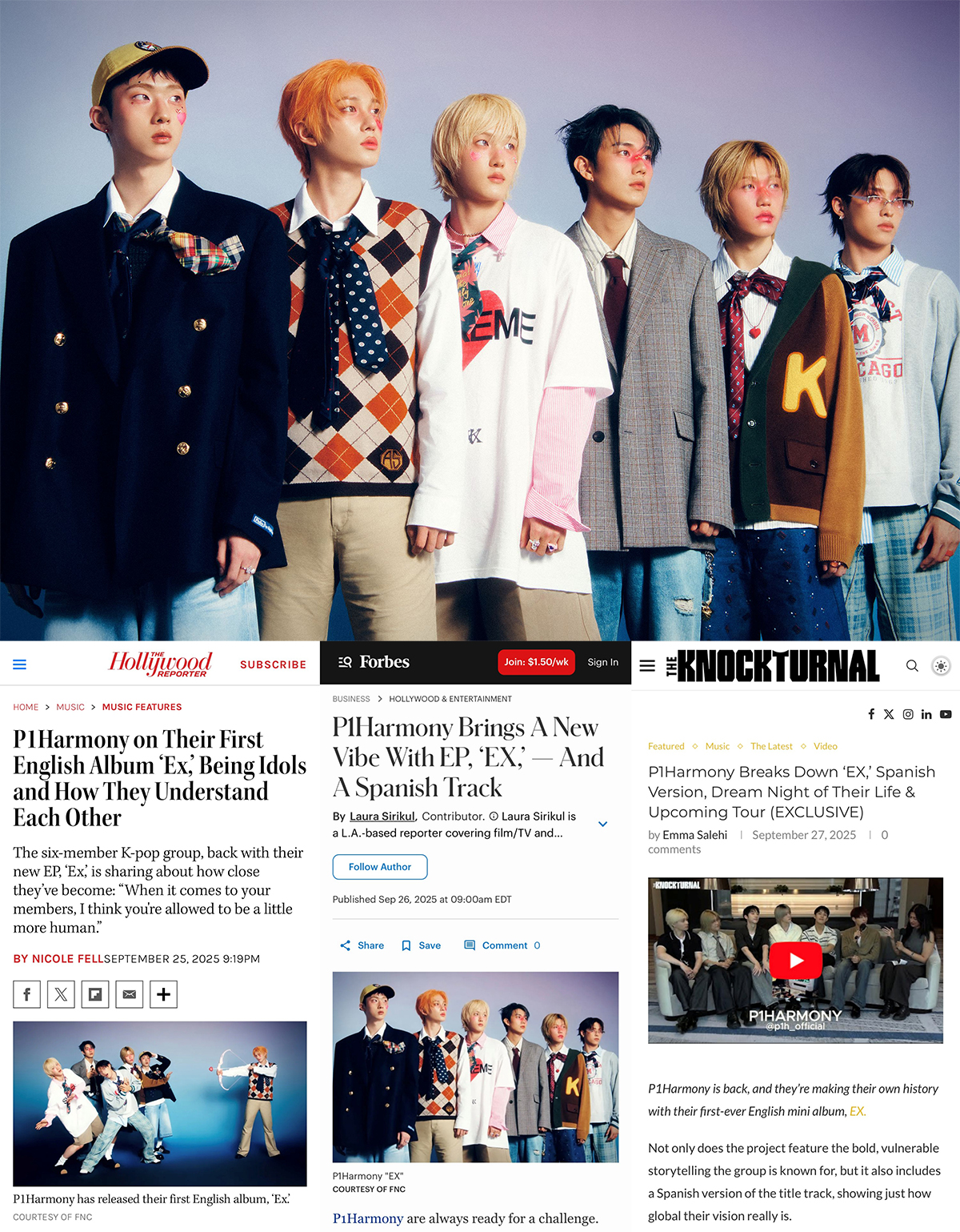 미국 대표 연예 매체 더 할리우드 리포터는 “피원하모니는 항상 진화하고 있는 것 같은 팀이다. 최신작이자 첫 번째 영어 앨범인 ‘EX’도 예외는 아니다. 5개의 트랙으로 구성된 이번 앨범은 그 자체로 최상이다. 매력적이고, 재미있고, 잠재적인 팬이라면 누구나 좋아할 것”이라며 극찬을 남겼다. 함께 공개된 인터뷰를 통해서는 영어와 스페인어 트랙까지 담은 이번 앨범에 대해 깊이 있는 이야기가 오갔다.