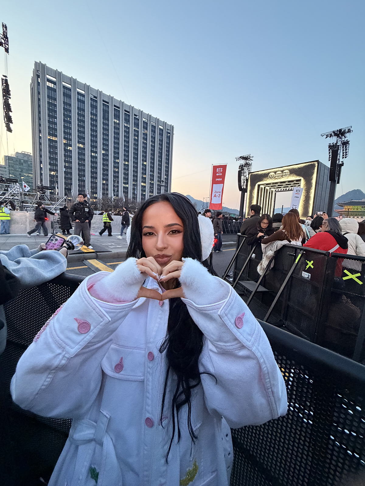 Now I’m here, invited by BTS and ARMY to witness this historic moment—their comeback. And it’s incredible to see the city, the crowds, even the emergency alerts on my phone about street closures. It’s something really big.