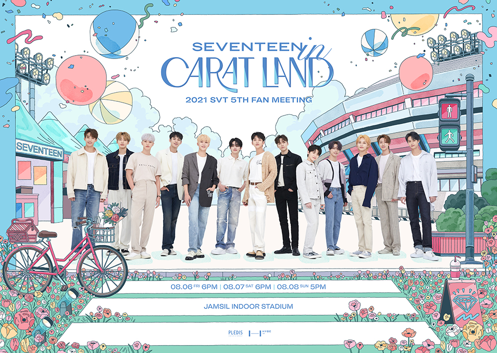 소속사 플레디스 엔터테인먼트는 지난 24일 오후 공식 SNS를 통해 2021 SVT 5TH FAN MEETING ‘SEVENTEEN in CARAT LAND(세븐틴 인 캐럿 랜드)’ 온라인, 오프라인 동시 개최 공지와 함께 포스터를 깜짝 공개하며 전 세계 캐럿들의 뜨거운 반응을 얻었다.