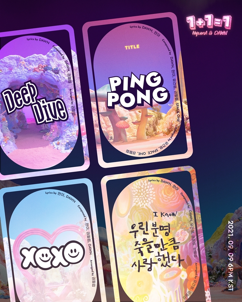 31일 오후 피네이션(P NATION) 공식 SNS를 통해 현아&던의 EP [1+1=1] 타이틀곡이 'PING PONG (핑퐁)' 임을 알리는 티저에 이어 트랙리스트 이미지가 순차적으로 오픈됐다.