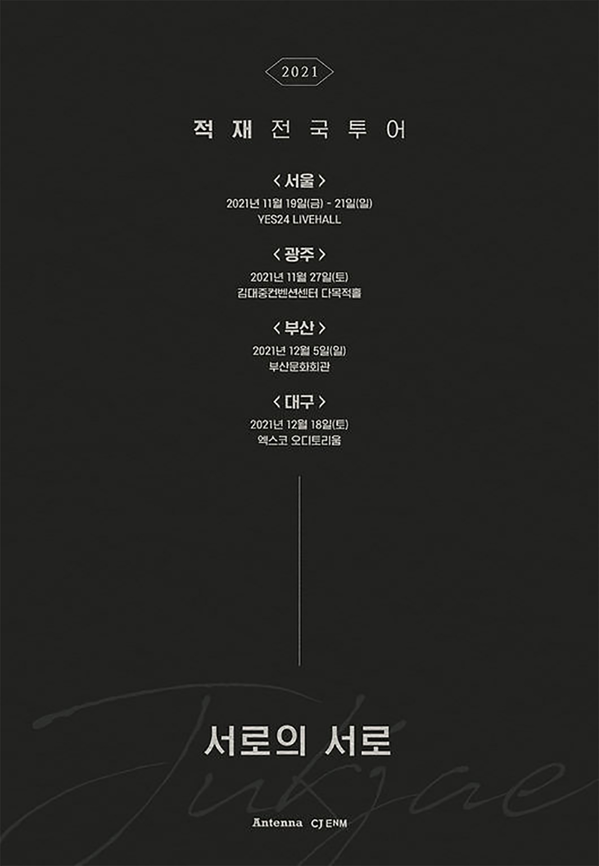 소속사 안테나는 지난 11일 공식 SNS를 통해 적재 2021 전국투어 콘서트 '서로의 서로’의 티저 포스터를 공개했다.