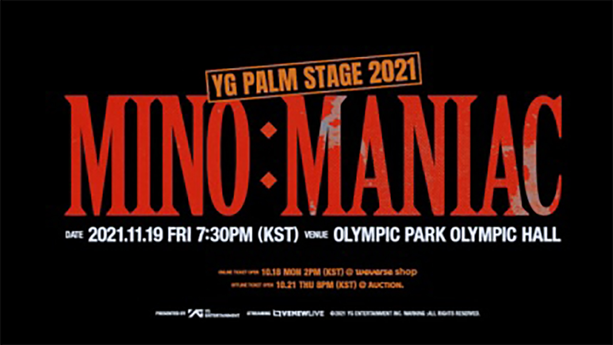 YG엔터테인먼트는 15일 송민호의 첫 솔로 콘서트 '와이지 팜 스테이지 = 2021 미노: 매니악'(YG PALM STAGE - 2021 MINO: MANIAC' TEASER VIDEO)'을 공개했다.