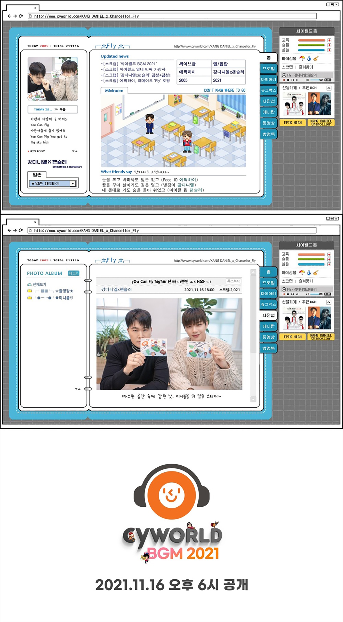 가수 강다니엘, 챈슬러가 싸이월드 BGM 2021 참여한 리메이크 음원 Fly가 오는 16일 오후 6시 전 온라인 음원 사이트를 통해 공개된다.