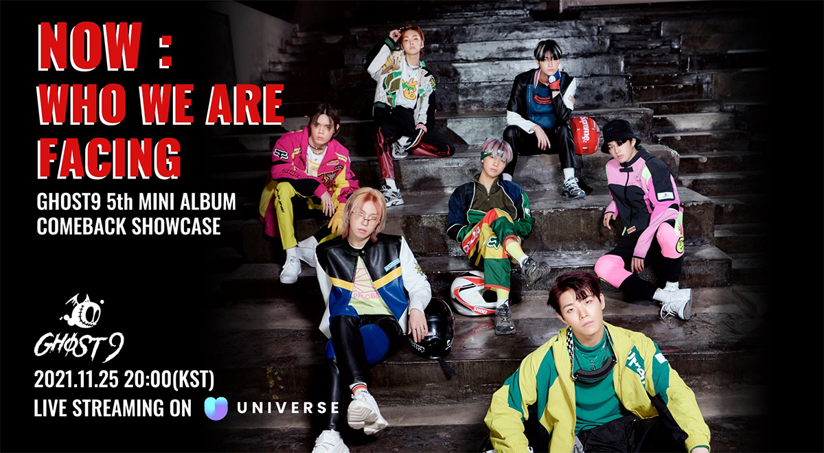 고스트나인(GHOST9)과 글로벌 팬덤 플랫폼 유니버스(UNIVERSE)가 오는 25일 오후 8시 다섯 번째 미니앨범 NOW : Who we are facing 컴백 쇼케이스를 온·오프라인 동시 개최한다.