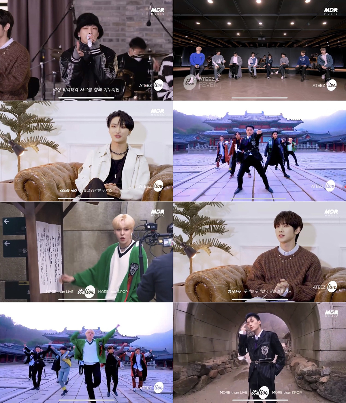 에이티즈는 밴드 사운드가 더해진 ‘피버(FEVER)’, ‘친구(THANK U)’, ‘프로미스(Promise)’ 라이브까지 선사했으며, 하이라이트로 MBC 대장금파크 스튜디오에서 진행된 사자탈, 사물놀이, 풍물패가 더해진 ‘멋(The Real) (흥 : 興 Ver.)’ 무대를 준비해 전 세계 팬들에게 우리나라의 풍성한 볼거리를 선사했다.