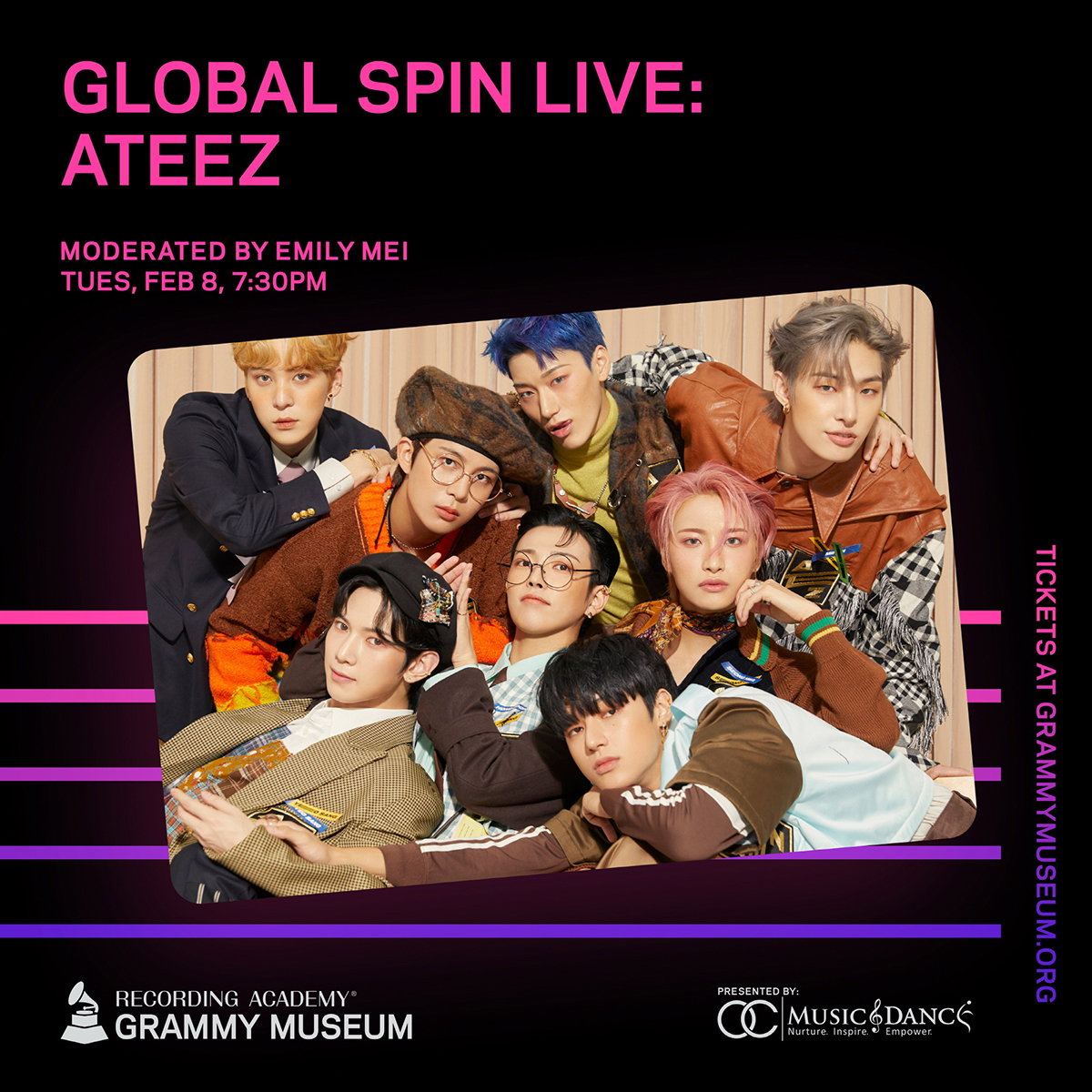뿐만 아니라 에이티즈는 8일(현지시간) 그래미 인기 온라인 시리즈 ‘글로벌 스핀’의 연장 선상으로 글로벌 뮤직 아티스트들이 선보이는 행사인 ‘그래미 글로벌 스핀 라이브(Global Spin Live)’에 출연해 토크와 함께 팬들과의 질의응답은 물론 무대까지 선보인다.