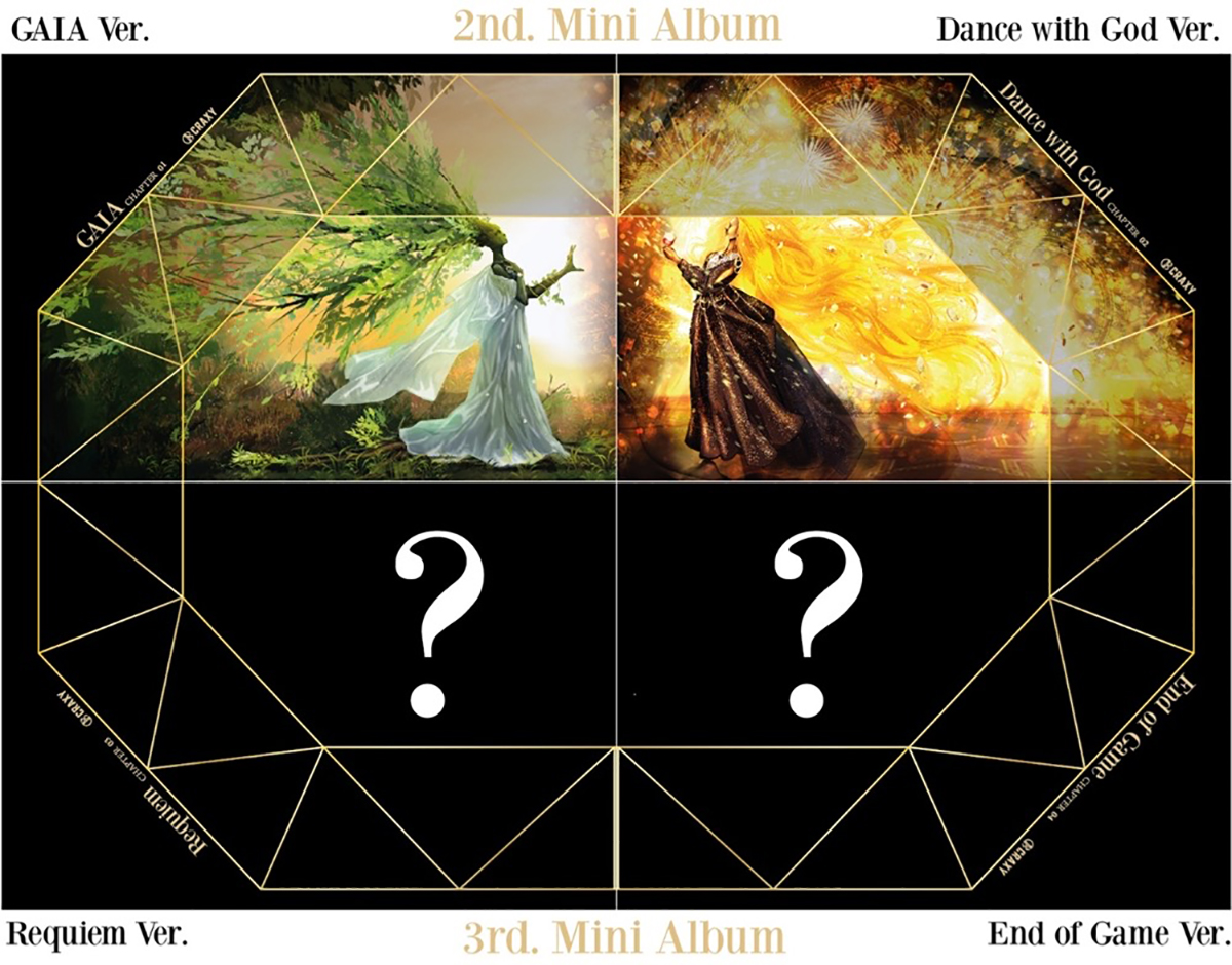 크랙시 공식 SNS를 통해 공개된 커버 이미지는 ‘GAIA’ 버전에는 대지를 상징하는 여신의 일러스트가, ‘Dance with God’ 버전에는 환락을 상징하는 여신의 일러스트가 서로 마주본 채로 하나의 연결된 세계관을 표현해 눈길을 사로잡았다.