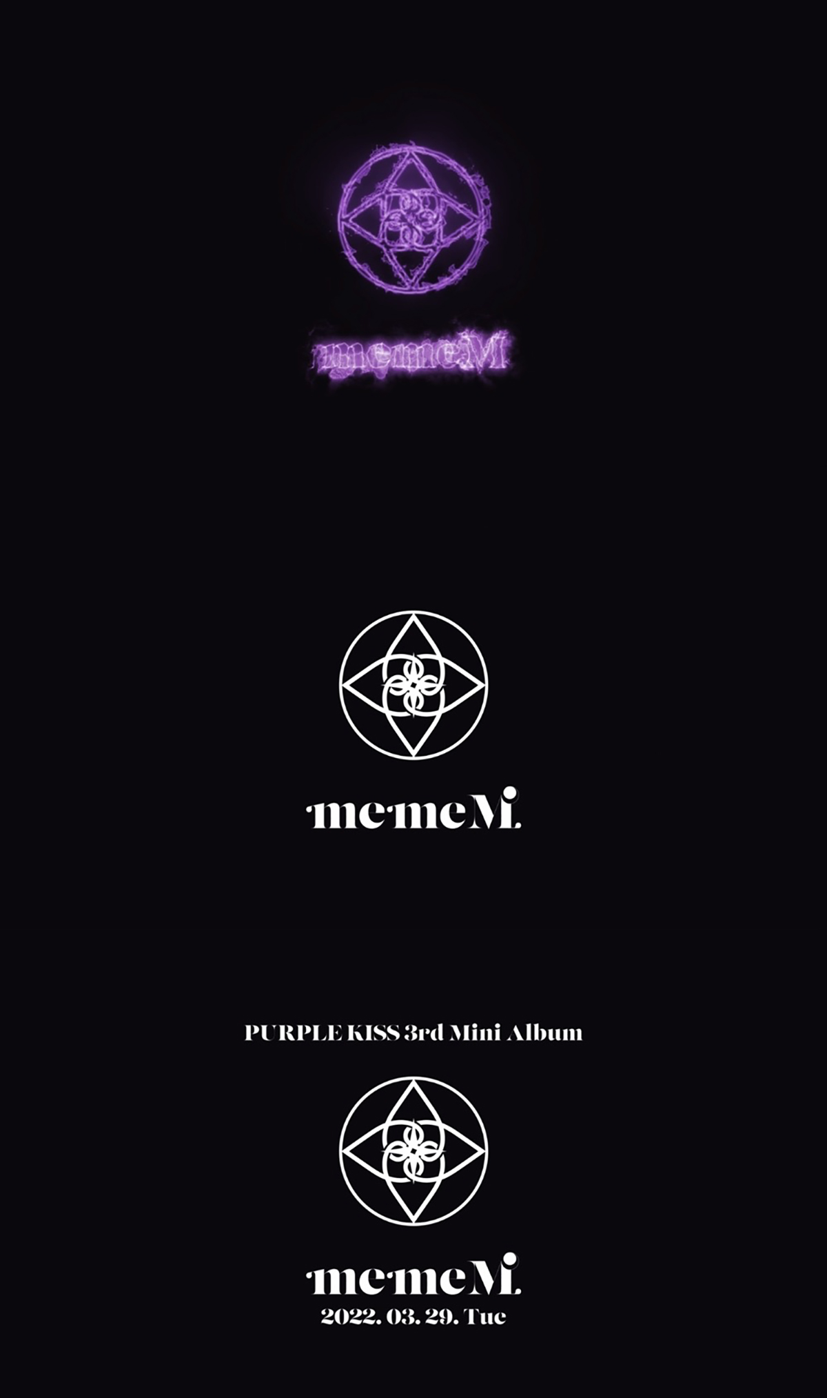 영상은 보라색 배경에 퍼플키스의 공식 로고가 등장하먀. 이내 공식 로고와 이를 90도 회전시킨 로고 두 개가 합쳐지며 마치 마법진을 연상케 하는 새로운 로고로 선보였다. 특히, 로고 하단에는 'Witch', 'Memory'라는 의문의 텍스트가 차례로 나타난 뒤, 신보의 타이틀인 'memeM'으로 변화돼 시선을 끌었다.