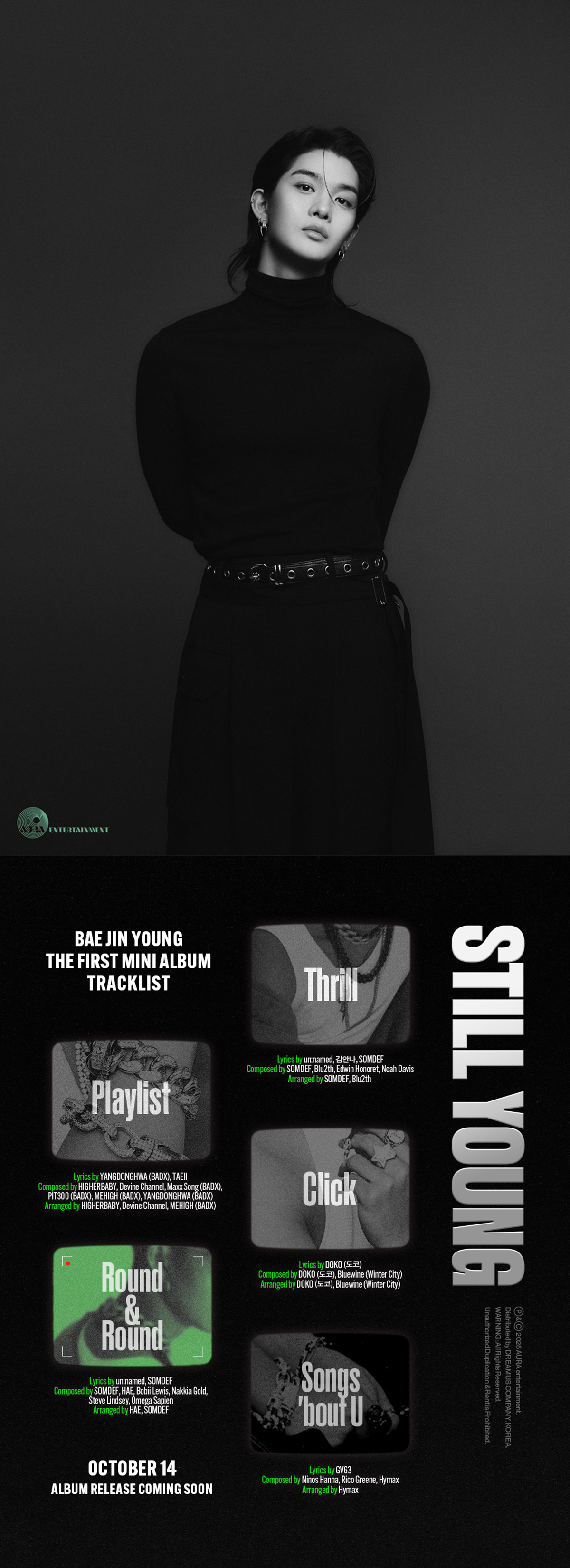 배진영은 1일 0시 공식 SNS를 통해 첫 번째 미니앨범 'STILL YOUNG(스틸 영)'의 트랙리스트 이미지를 공개했다. 흑백 톤과 네온 포인트가 어우러진 이미지는 수록곡 소개를 넘어 곡의 분위기와 메시지를 시각적으로 암시해 시선을 사로잡는다.