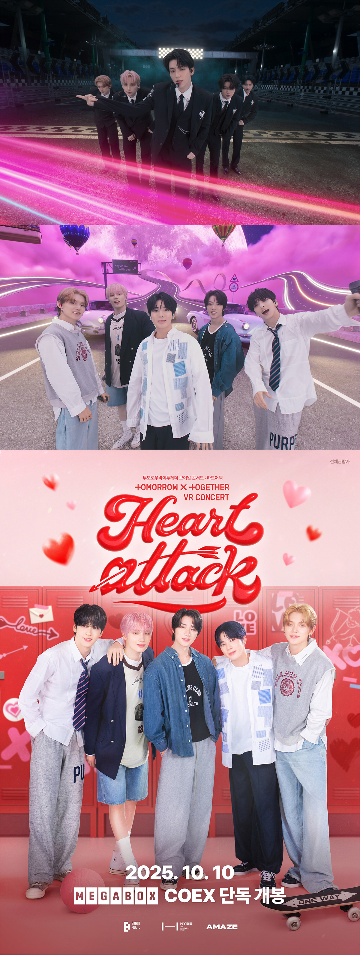 투모로우바이투게더(수빈, 연준, 범규, 태현, 휴닝카이)의 두 번째 VR 콘서트 ‘투모로우바이투게더 VR 콘서트 : 하트어택’(TOMORROW X TOGETHER VR CONCERT : HEART ATTACK, 이하 ‘하트어택’)은 10월 10일부터 11월 16일까지 메가박스 코엑스점에서 단독 상영된다.