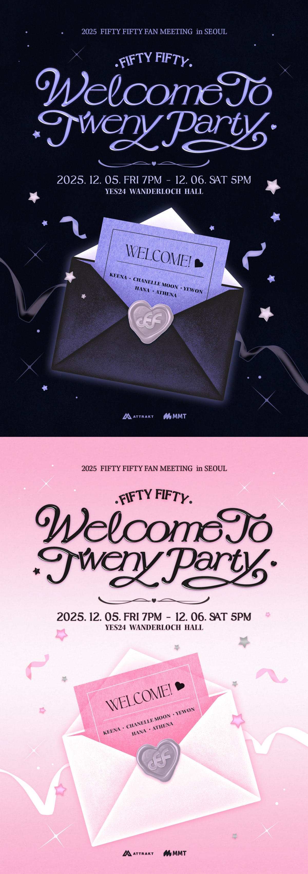 걸그룹 피프티피프티(FIFTY FIFTY)는 오는 12월 5일과 6일 양일간 서울 예스24 원더로크홀에서 공식 팬미팅 ‘FIFTY FIFTY : Welcome to Tweny Party’를 개최한다.