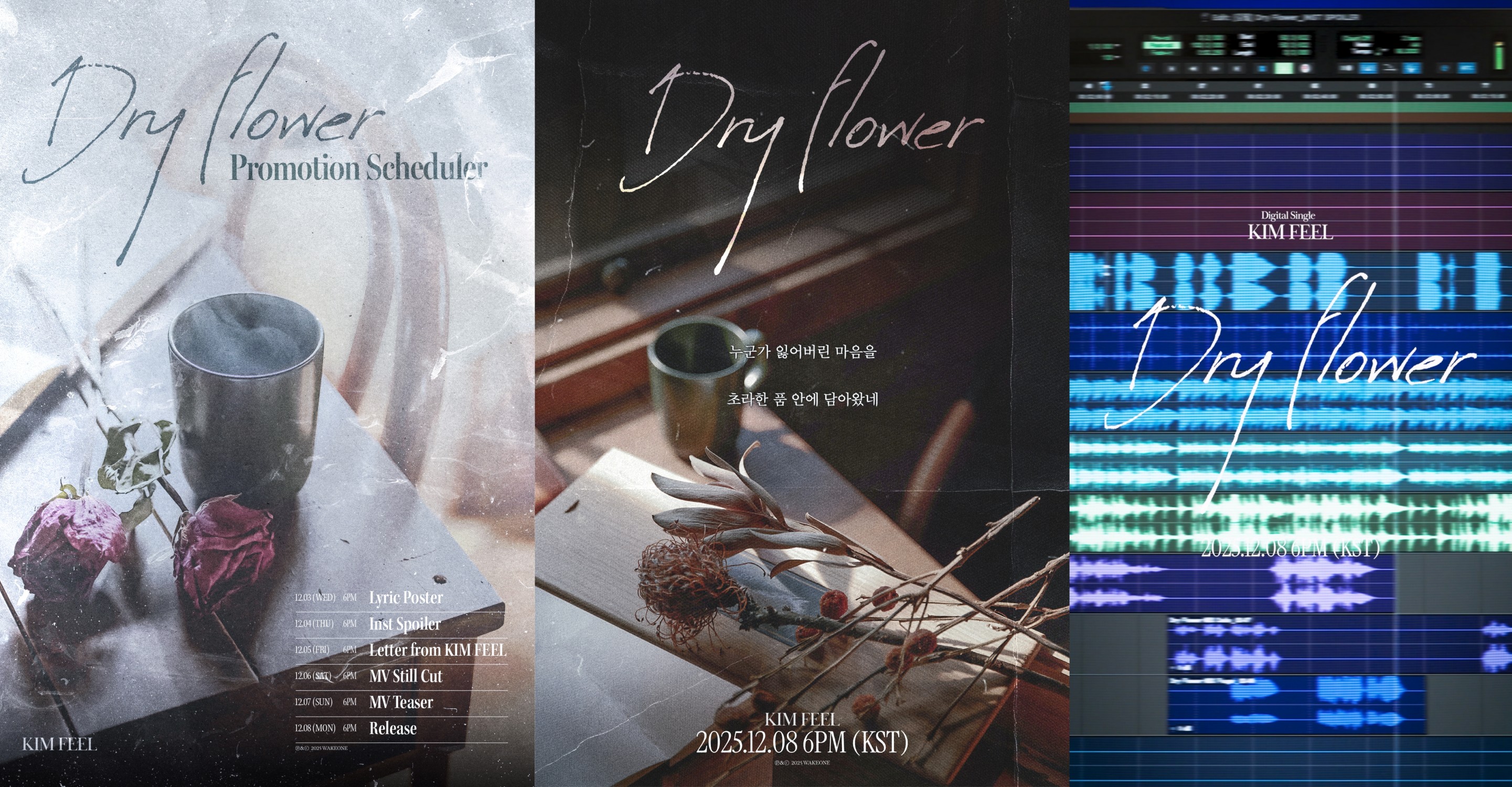 티징 콘텐츠 속 빛바랜 꽃잎의 이미지처럼, 화려함은 덜하지만 시간 속에 남는 감정을 노래로 옮긴 이번 신곡은 김필 특유의 절제된 정서와 깊은 보컬이 어우러져 또 하나의 담담한 서사를 완성할 예정이다.