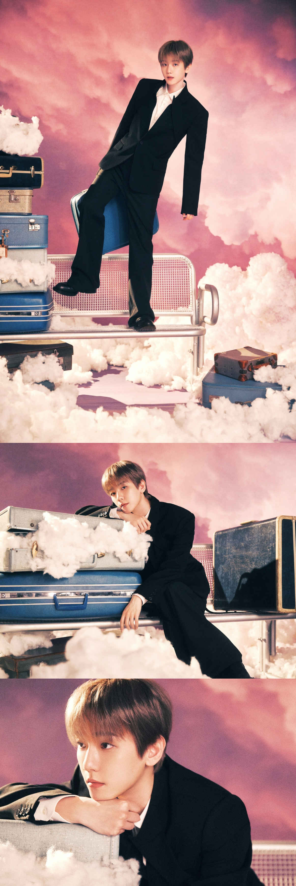 공개된 사진 속 백현은 구름과 빈티지한 캐리어가 가득한 공간에서 차분한 표정과 여유로운 포즈를 선보이며 색다른 무드를 완성했다. 특히 따뜻한 핑크 톤과 몽환적인 분위기가 어우러져 기존 월드 투어의 감성을 유지하면서도 앙코르 공연만의 새로운 기대감을 더해 시선을 사로잡는다.