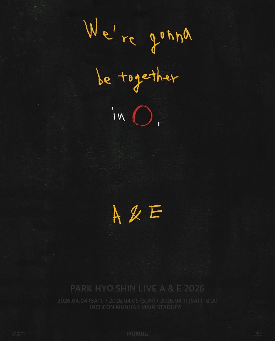 공개된 티저 포스터에 따르면, ‘박효신 LIVE A & E 2026’은 오는 4월 4~5일과 11일 오후 6시 20분 인천문학경기장 주경기장에서 펼쳐진다. 이와 함께 ‘We’re gonna be together in O, A & E’라는 문구가 적혀있어 무엇을 의미하는 것인지 궁금증을 자아냈다.