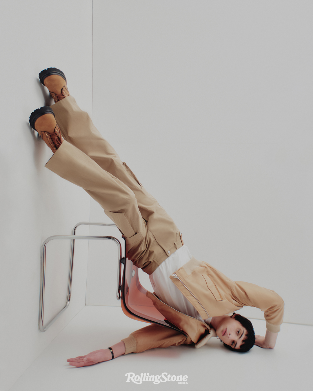이번 촬영의 키워드는 ‘Self-love(자기 사랑)’. 그러나 그 단어를 입에 올리는 그의 태도는 명확하다기보다, 오히려 솔직한 망설임에 가깝다. 마치 한 번에 정의 내릴 수 없는 무언가와 여전히 씨름하고 있는 사람처럼.